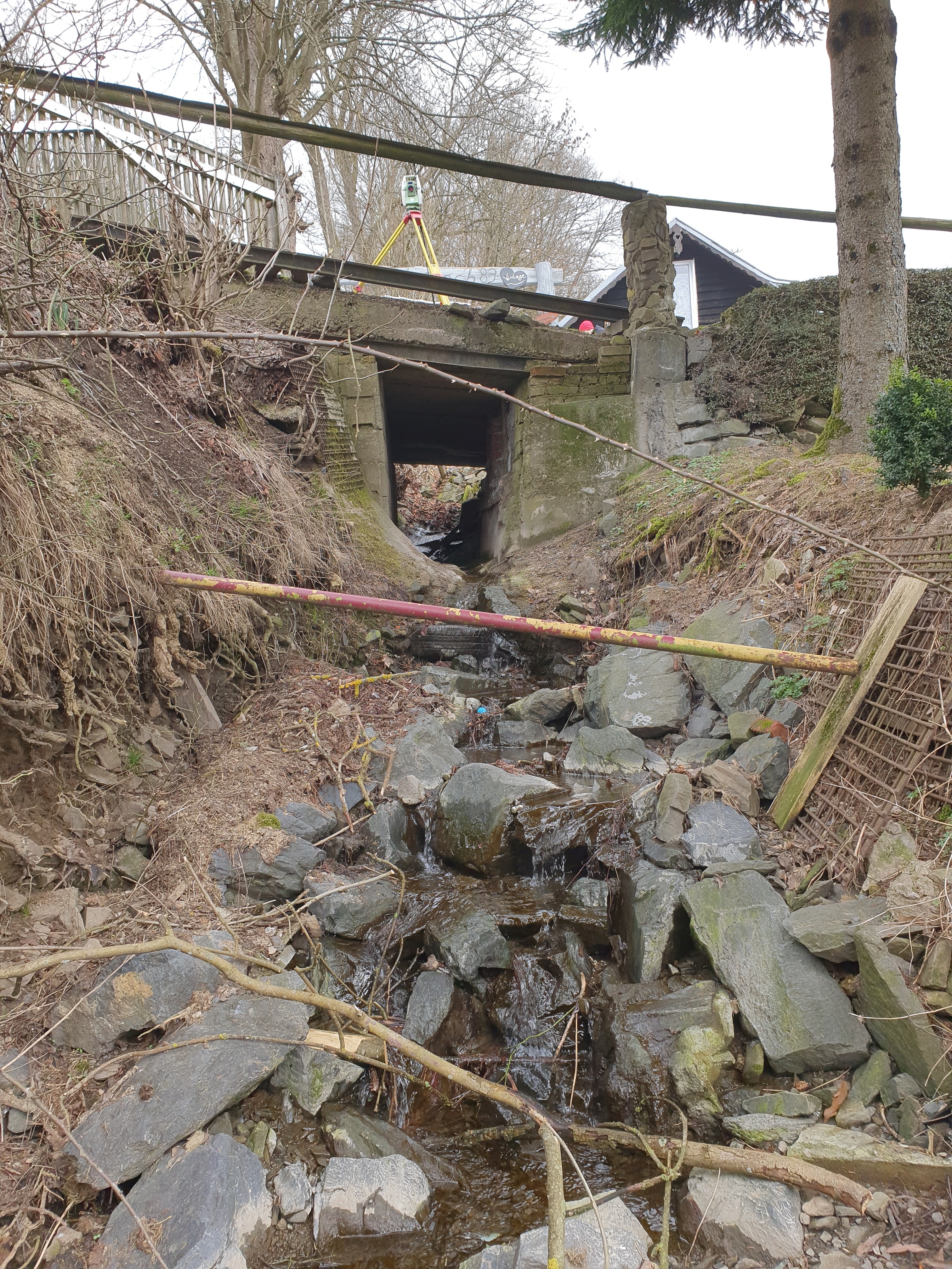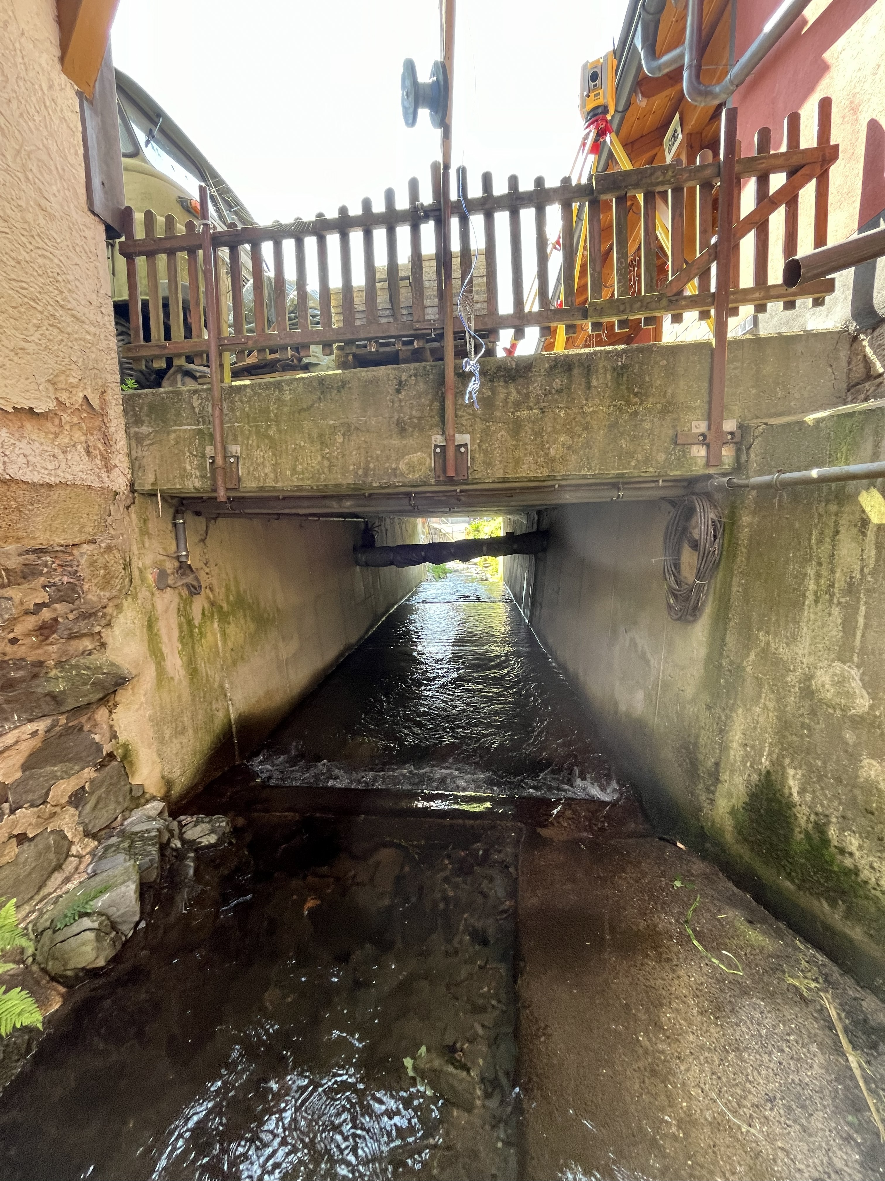 Da das vorhandene DGM nicht die gewünschte Genauigkeit aufwies, wurden wir mit der präzisen Vermessung der gewässerrelevanten Engstellen beauftragt. Sämtliche Durchlässe sowie ergänzende Querprofile wurden detailliert aufgenommen und ausgewertet. Zudem erfassten wir den vollständigen Verlauf des Flusses im gesamten Stadtgebiet, um eine verlässliche Grundlage für die weitere hydrologische und planerische Bearbeitung zu schaffen.